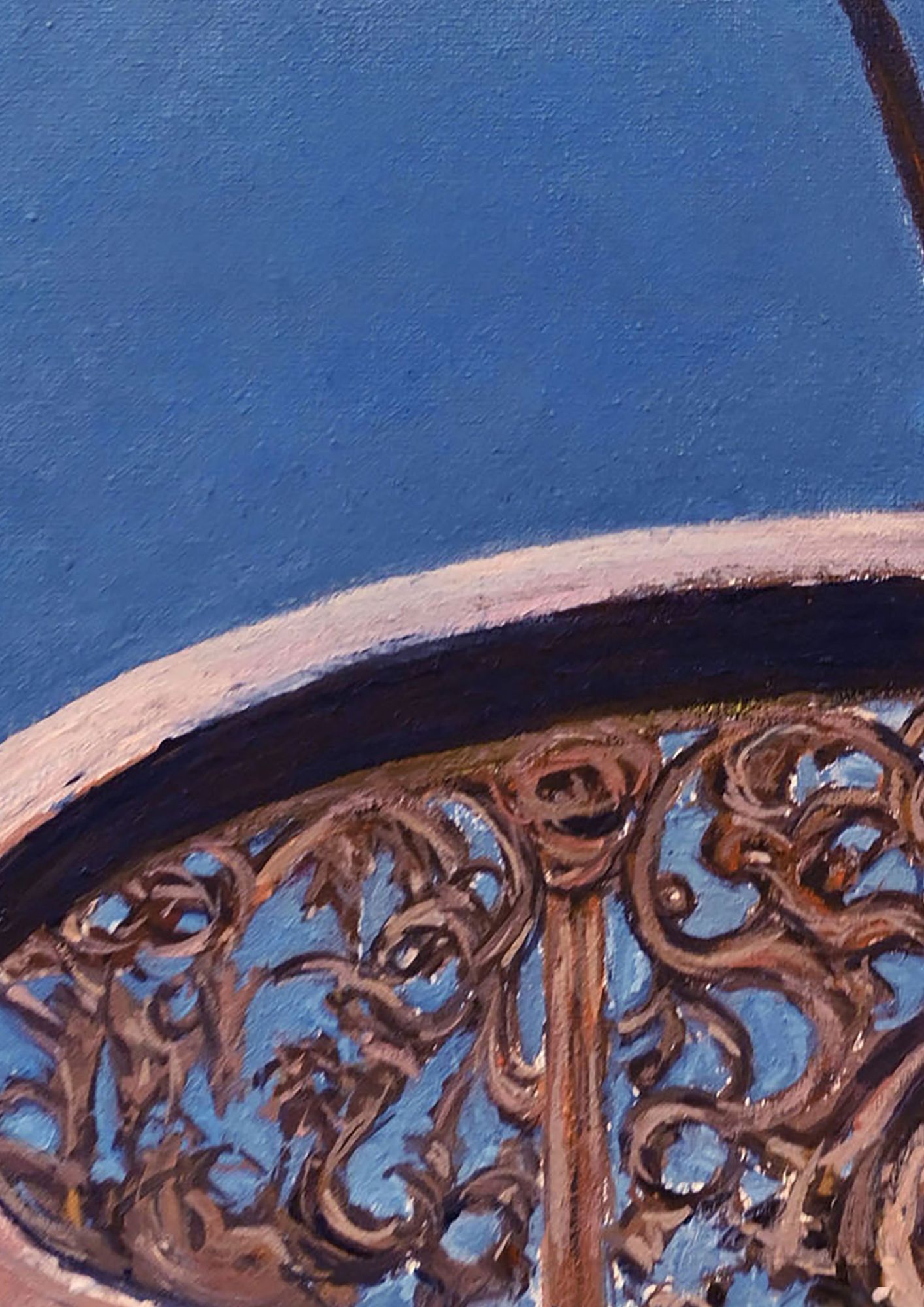 Gracias también a Julio, de Estudios Norman. Yo he realizado el óleo, pero él ha hecho después una fotografía estupenda de la obra y ha diseñado la tipografía. El cartel es un homenaje a las revistas «retro» de la Semana Santa oriolana, donde el uso del paspartú lila (símbolo del color religioso) acentúa la mirada hacia el rostro de Jesús.