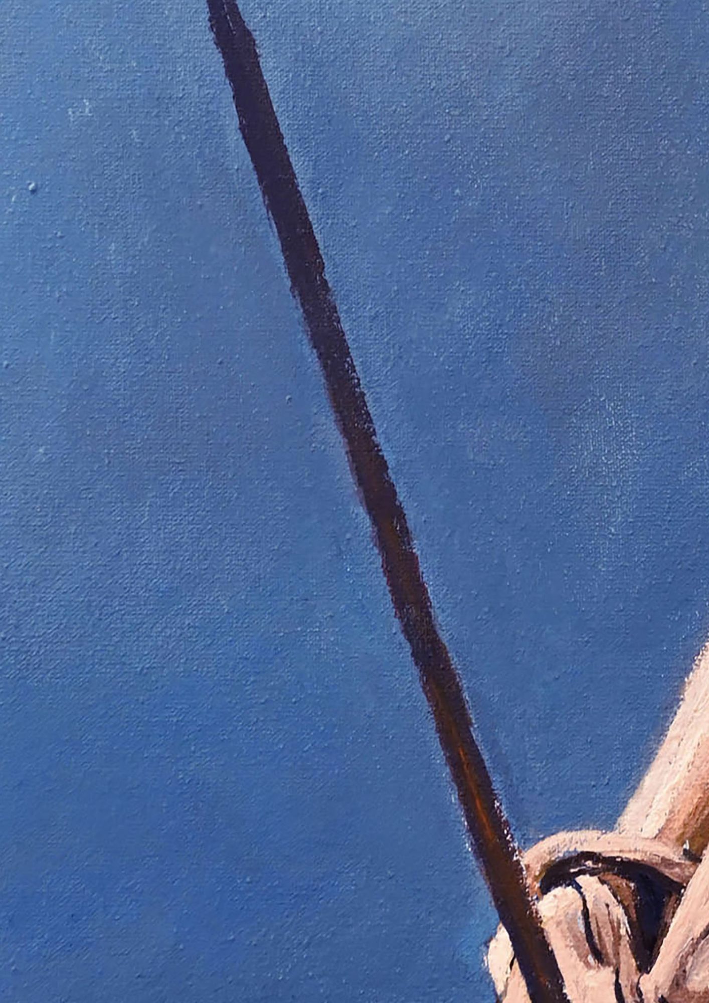 He aplicado colores complementarios: el azul del cielo frente alnaranja de la piel. De este modo, Cristo se refleja en el cielo y viceversa. El cielorepresenta lo etéreo, lo no revelado y lo intangible (la morada de Dios); mientras que enel Cristo, los tonos anaranjados simbolizan la vida.