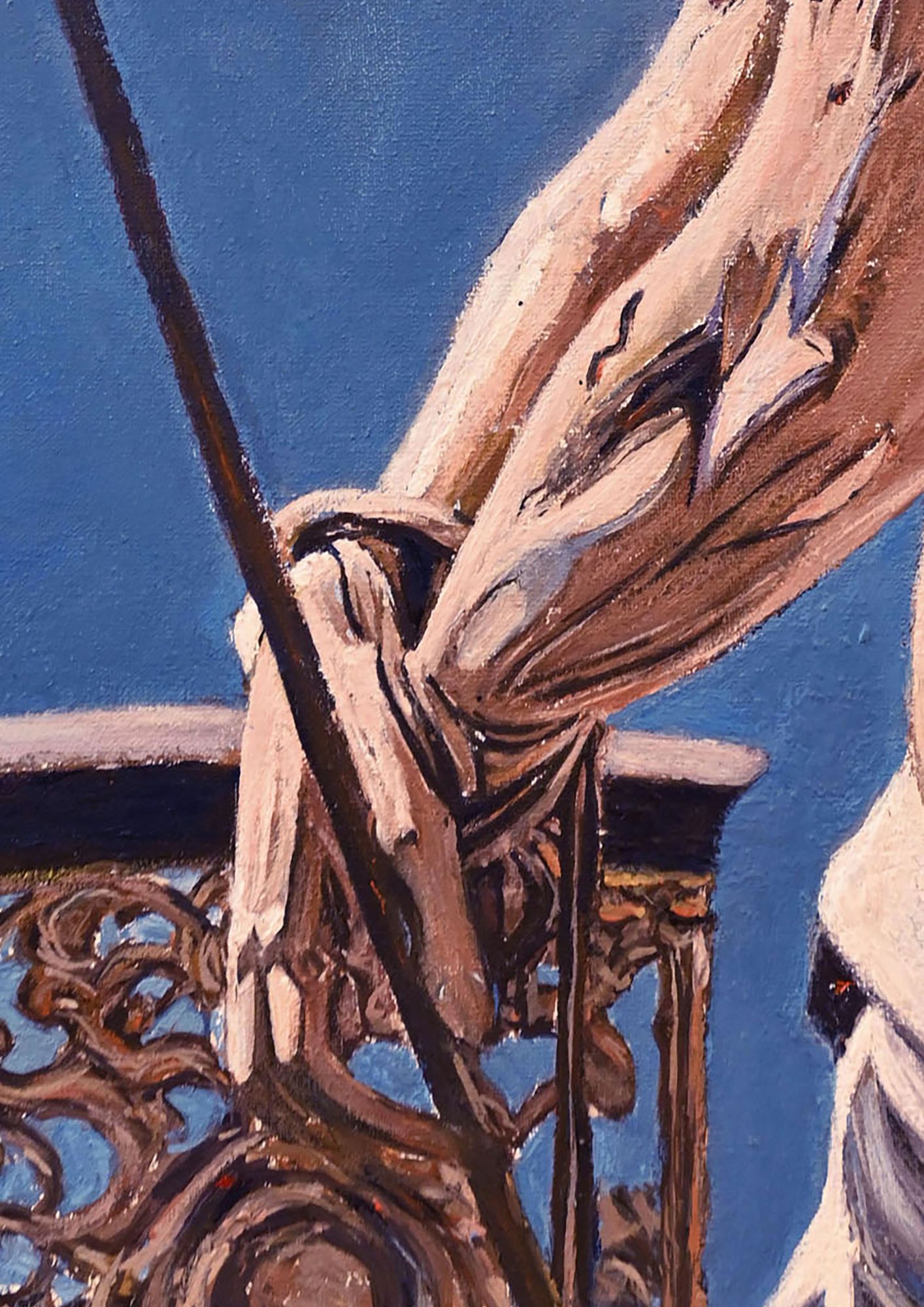 He buscado potenciar el aspecto escultórico de la imagen, aportando más realismo y una capacidad formal más rotunda. En este sentido, he querido pensar que era un día de primavera soleado cuando Jesús salió al balcón; bajo esa luz, la sangre estaría ya seca y oscura. Por este motivo, he acentuado este detalle más que en la talla original, buscando esa veracidad