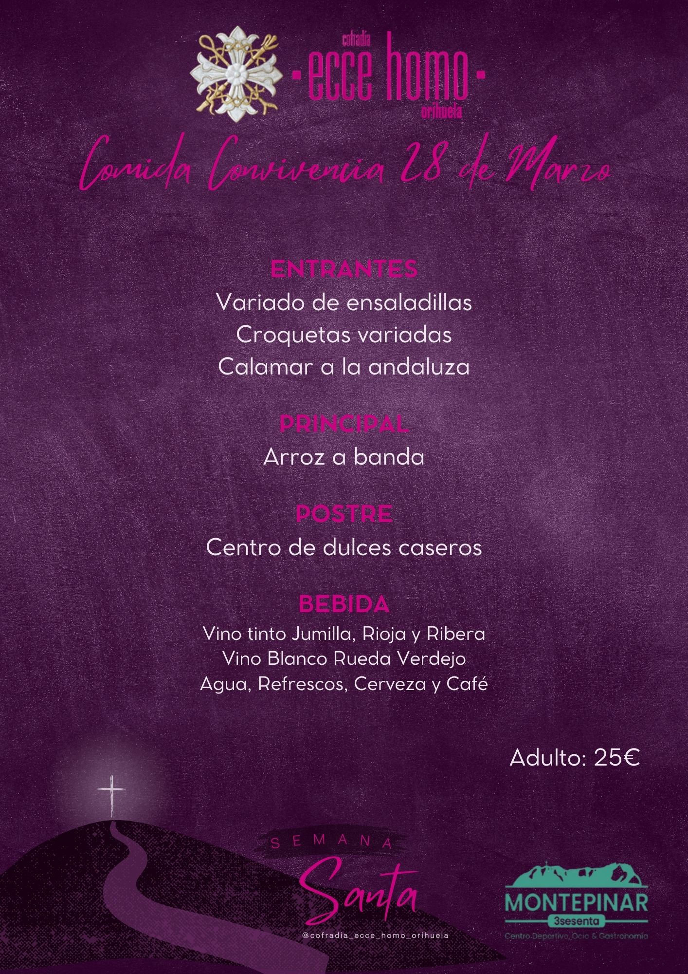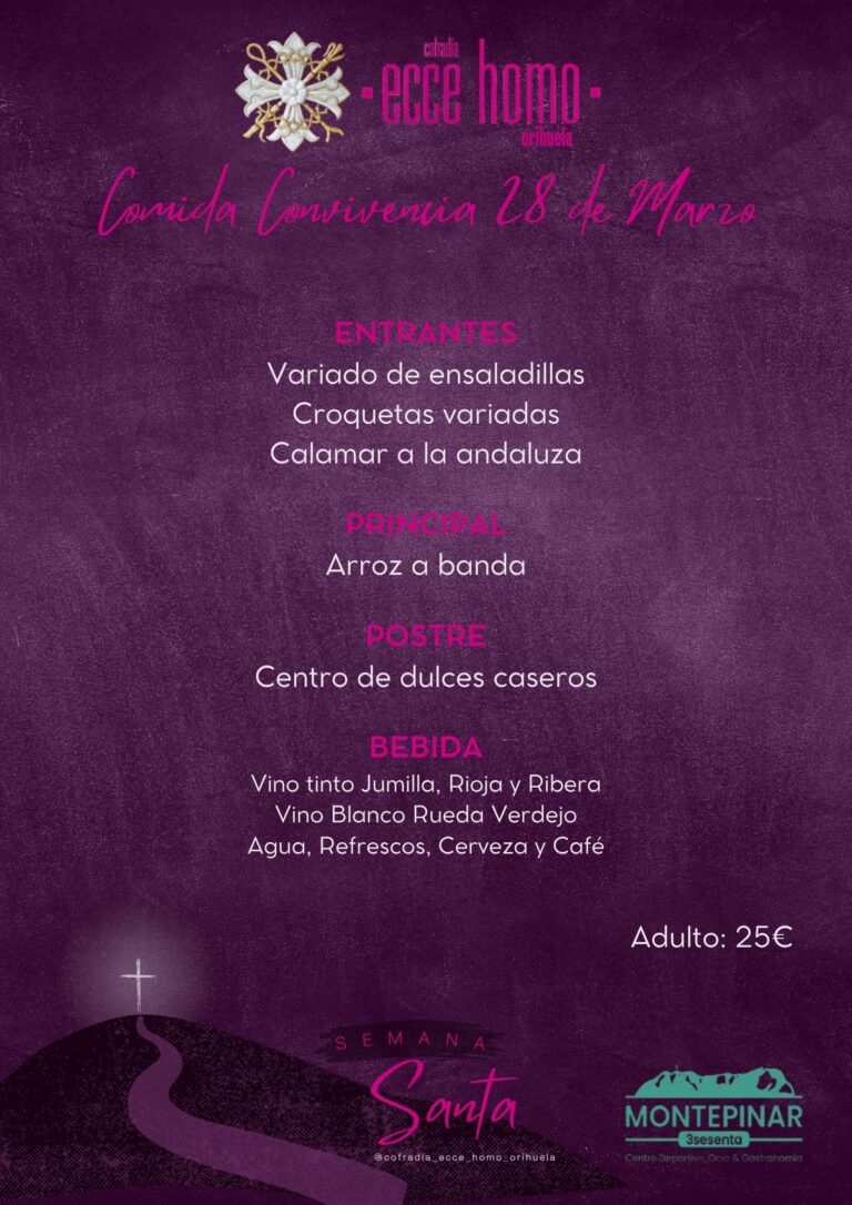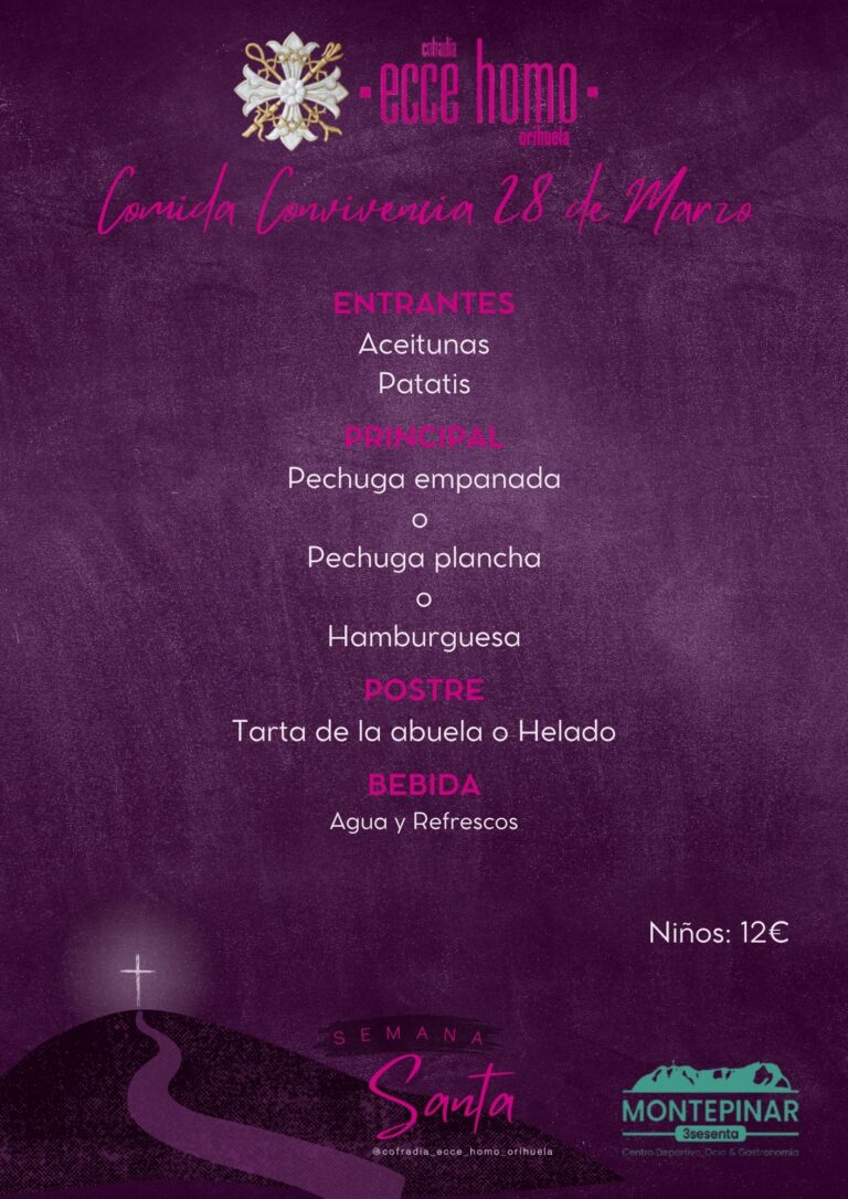 Con el objetivo de fomentar la, este año hemos trasladado nuestra tradicional comida de hermandad al sábado 28 de marzo, víspera del Domingo de Ramos.